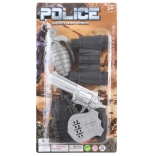 Set complet de poliție pentru micii apărători ai legii, cu accesorii sigure pentru joc creativ. Include pistol cu ventuze, 3 proiectile cu ventuză, grenadă, stație/stație walkie-talkie, binoclu și insignă. Ideal pentru copii de la 3 ani, realizat din plastic durabil.