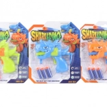 Pistolă din plastic amuzantă, în formă de dinozaur, care trage gloanțe din spumă cu ventuză. Ideală pentru joacă în siguranță, acasă și afară. Pachetul conține pistolul și 3 gloanțe din spumă cu ventuză. Ușor de folosit, construcție ușoară și distracție sigură pentru copii de la 6 ani.
