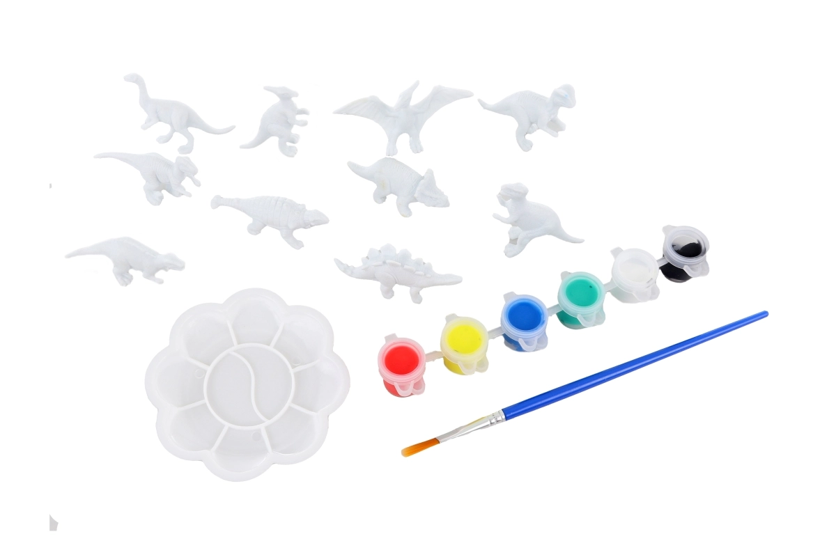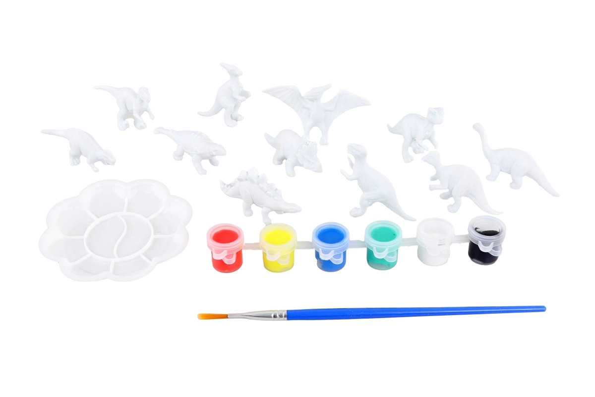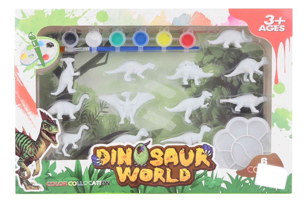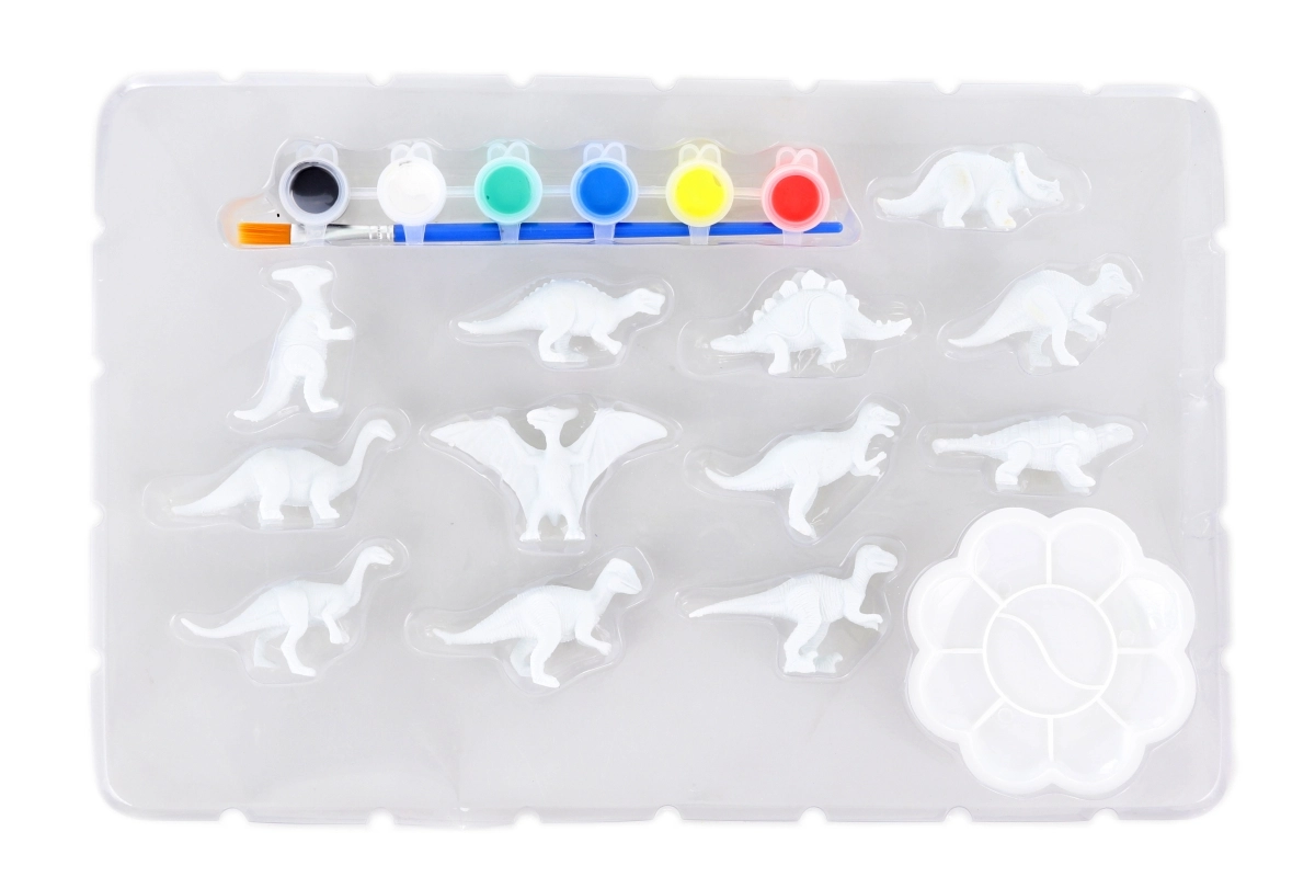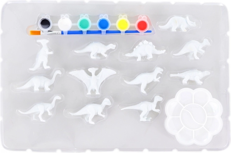 Setul conține dinozauri 3D, 6 culori, pensulă și paletă – copiii pot începe să creeze imediat, fără a cumpăra materiale suplimentare.