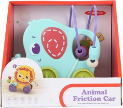 Acest labirint colorat din plastic, elefant pe roți, este o jucărie motrice grozavă pentru cei mai mici. Copiii își exersează coordonarea mână–ochi, răbdarea și concentrarea atunci când deplasează mărgelele pe sârme și mișcă jucăria pe podea. Datorită execuției robuste și netede, jocul este sigur și plăcut la atingere.