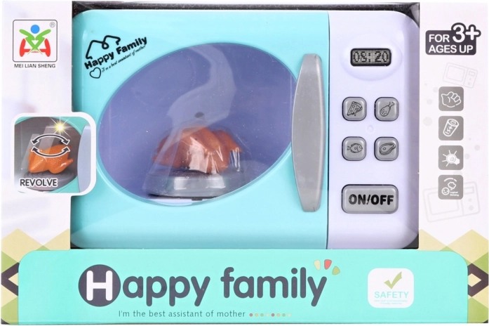 Cuptorul cu microunde pentru copii HAPPY FAMILY aduce distracție realistă în orice bucătărie de joacă. Datorită efectelor luminoase și farfuriei care se rotește, copiii pot vedea cum funcționează un cuptor cu microunde real și își pot dezvolta astfel motricitatea fină, imaginația și jocurile de rol.
