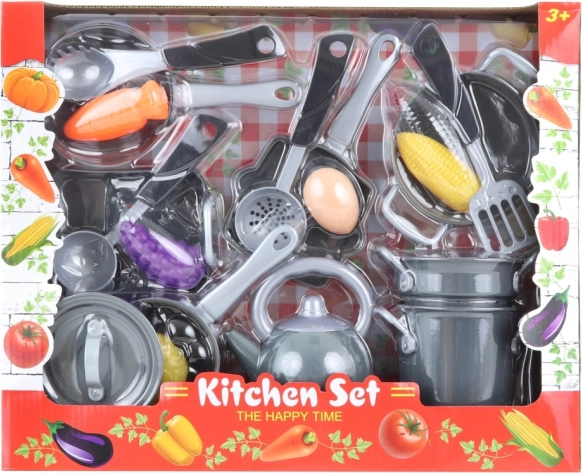 - Crăticioară cu capac, oală cu strecurătoare, ceainic, tavă de copt, 2 tigăi, wok, accesorii și machete de alimente