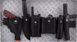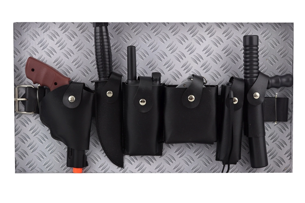 - Curea din piele (aprox. 43 cm), pistol, cuțit, stație radio, cătușe, lanternă cu baterii, baston
