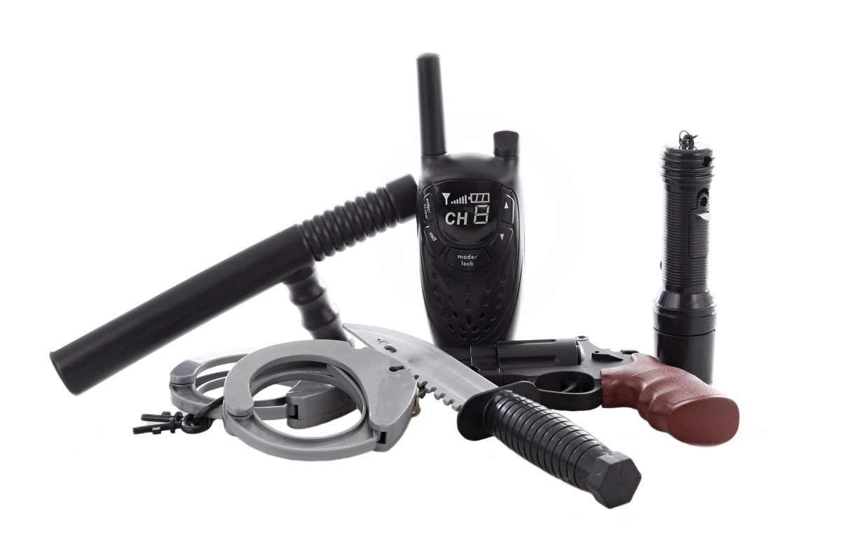 Setul de poliție pentru copii, cu o curea din piele rezistentă și accesorii bogate, îi va încânta pe toți micii apărători ai legii. Pachetul conține tot ce este necesar pentru un joc plin de acțiune: pistol, cuțit, stație radio, cătușe, lanternă cu baterii și baston. Sunt incluse și 3 baterii AG13, astfel încât distracția poate începe imediat. Potrivit pentru copii de la 6 ani.