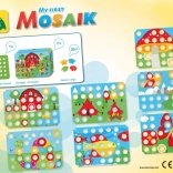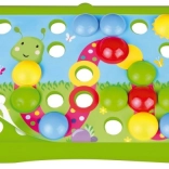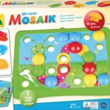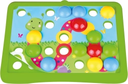 Mozaic distractiv cu motive din natură pentru cei mai mici copii, care susține motricitatea fină, învățarea culorilor și abilitățile de coordonare. Datorită piroanelor mari și orificiilor ușor de nimerit, copiii de la 2 ani se obișnuiesc rapid cu jocul. Include 7 șabloane colorate și 36 de piroane din plastic rezistent.