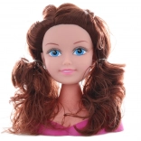 Acest cap de coafat pentru stilizare, cu păr castaniu ondulat, este o alegere excelentă pentru copiii care iubesc coafatul și machiajul. Datorită suportului stabil și părului sintetic de calitate, se poate exersa cu ușurință pieptănarea, împletirea și crearea de coafuri creative.