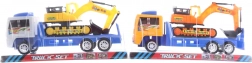 Set de construcție distractiv pentru micii constructori: camion din plastic cu excavator, lungime aprox. 25 cm. Ideal pentru copii de la 3 ani, susține dezvoltarea motricității, joaca creativă și imaginația. Dimensiunile compacte și construcția ușoară asigură manevrare facilă și transport ușor.