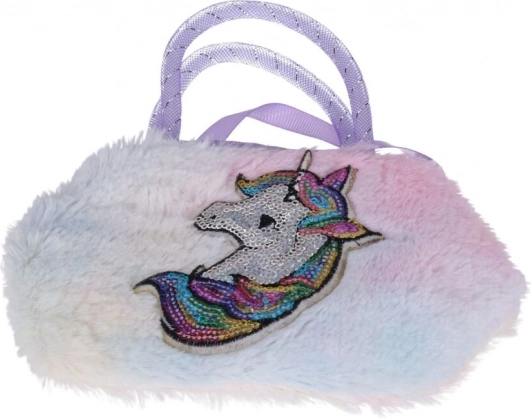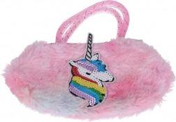 Geantă din pluș cu motiv magic de unicorn, care va încânta orice mică prințesă.