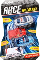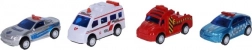 Set de patru mașinuțe cu funcție de întoarcere pentru o plimbare distractivă pe 'autostradă'. Lungimea fiecărei mașinuțe este de 7 cm. Un cadou perfect pentru micii pasionați de mașini și joc.< /div>