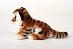 Tigru de pluș maro cu dimensiuni de aproximativ 25 x 19 x 11 cm (fără coadă). Lungimea cozii este de aproximativ 12 cm. Vârsta 0+
