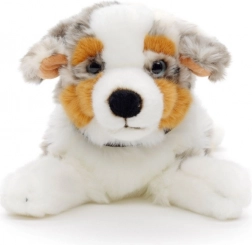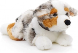 Adorabilul cățel de pluș din rasa Ciobănesc australian, în poziție culcat, îi va încânta pe copii și pe iubitorii de animale. Este moale, catifelat și, datorită execuției eco-friendly, prietenos cu natura. Ideal pentru alintat, joacă sau ca decorațiune în camera copilului.