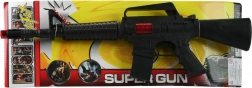 Pistol-mitralieră pentru copii cu aspect realist, pentru micii eroi de acțiune. Jucărie din plastic cu lungime de aprox. 43 cm care, la apăsarea trăgaciului, zdrăngăne și creează un efect de scântei. Ideală pentru jocuri de soldați și aventuri de imaginație. Potrivită pentru copii de la 3 ani.