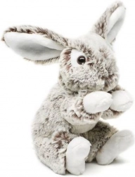 Acest iepuraș de pluș gri impresionează prin blănița sa fină, detaliile albe de pe lăbuțe și urechiușe și expresia prietenoasă. Execuția în poziție așezată îl transformă într-un accesoriu adorabil pentru camera copilului și într-un companion grozav în călătorii.