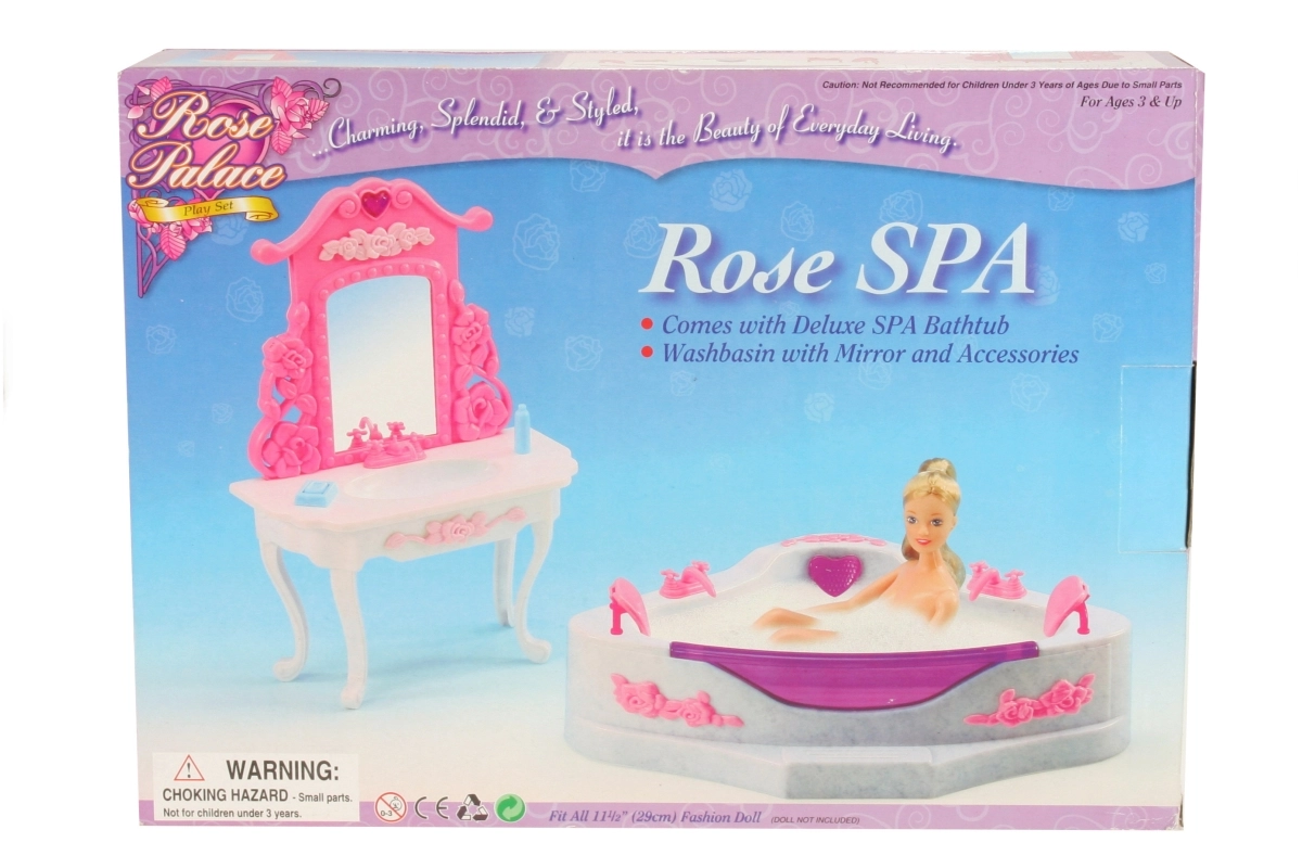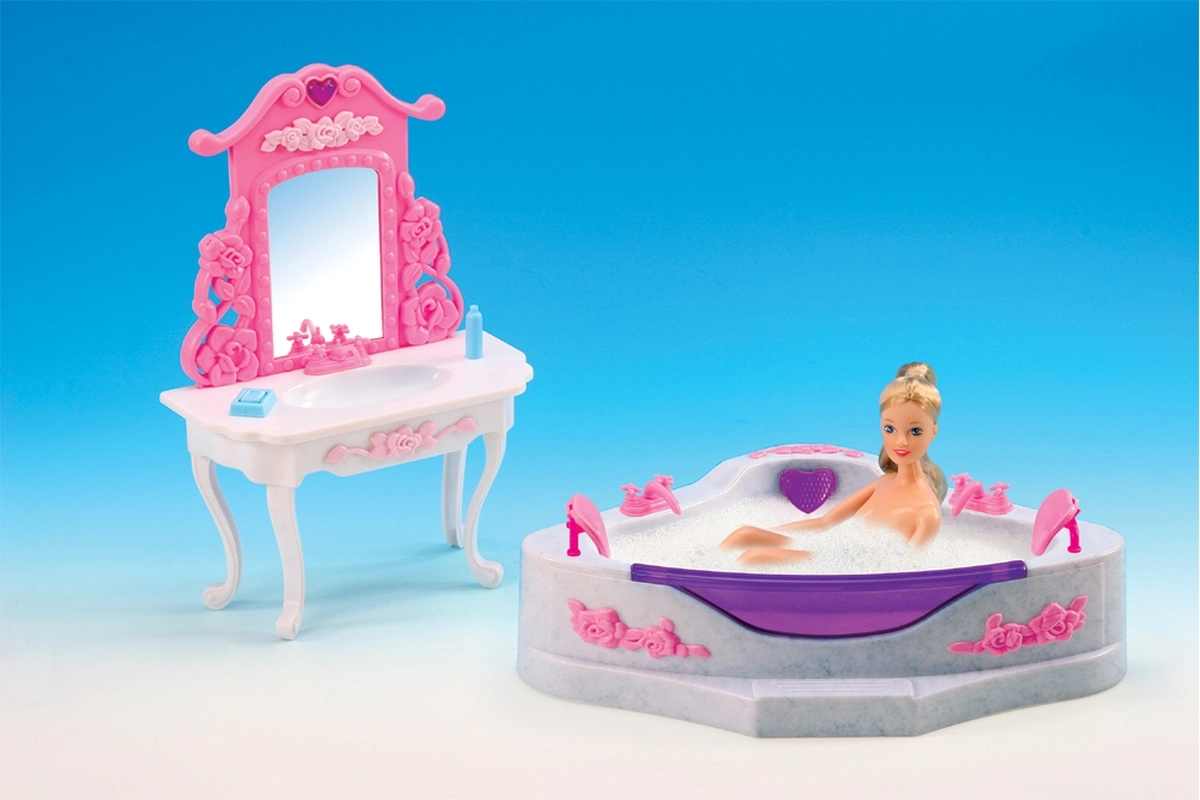Setul elegant pentru baie GLORIA transformă orice căsuță pentru păpuși într-o baie realistă. Conține o cadă de colț, o chiuvetă cu oglindă și este ideal pentru crearea scenelor zilnice de îngrijire a păpușilor. Datorită dimensiunilor potrivite pentru majoritatea păpușilor și execuției de calitate, susține imaginația, creativitatea și abilitățile sociale ale copiilor. Păpușa nu este inclusă în pachet.