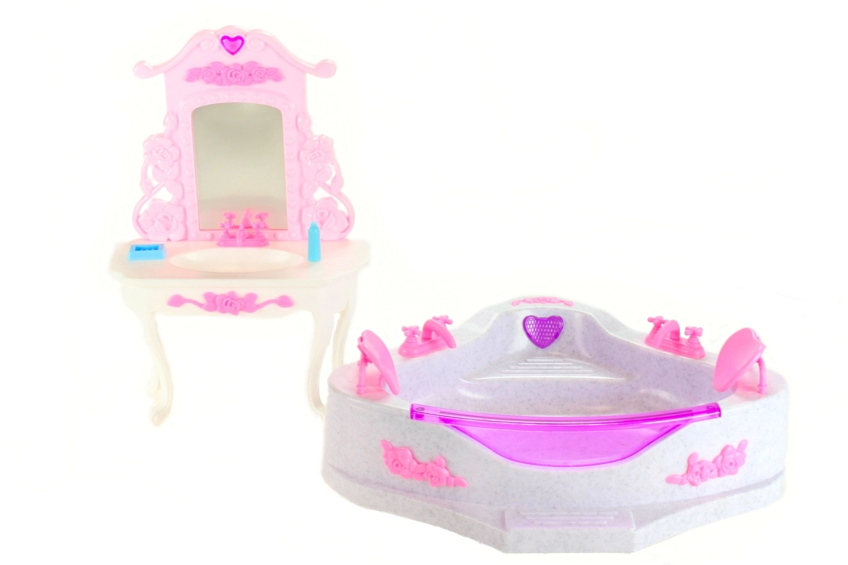 Acest set de baie GLORIA este un accesoriu excelent pentru căsuța de păpuși. Cada de colț și chiuveta independentă cu oglindă creează un mediu realist, în care copiii pot reda scene din viața de zi cu zi și își pot dezvolta astfel imaginația.