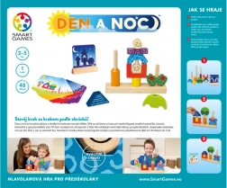 Zi și noapte este un joc logic inteligent conceput pentru un singur jucător, care îi ghidează pe copii de la primele puzzle-uri simple până la sarcini spațiale mai complexe. Pe cardurile de zi se văd toate detaliile, în timp ce cardurile de noapte arată doar contururi – astfel copilul își antrenează imaginația, atenția și motricitatea fină.
