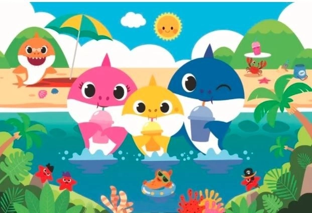 - Motiv: familia de rechini în vacanță (Baby Shark)