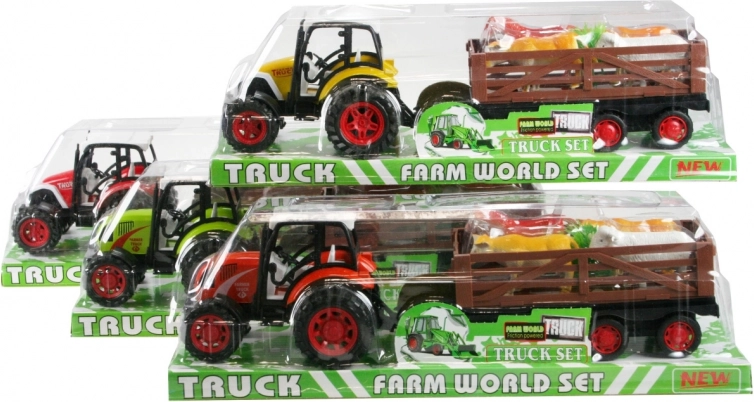 Jucărie distractivă pentru cei mici – tractor cu mecanism cu inerție, remorcă și patru animăluțe din plastic. Ideal pentru copii de la 3 ani, susține imaginația și motricitatea fină.