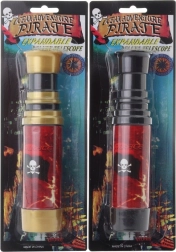 Pornește într-o călătorie plină de aventuri cu luneta de pirat care stimulează imaginația copiilor și jocurile de rol. Datorită dimensiunilor compacte și extinderii ușoare, luneta încape comod în buzunar și este mereu gata de acțiune. Steagul de pirat cu craniu oferă un aspect autentic și îi va încânta pe micii iubitori de aventură.