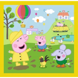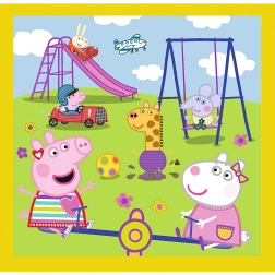 Acest set fermecător de puzzle 3-în-1 cu motive PEPPA PIG aduce copiilor multă bucurie și dezvoltare. Trei imagini cu niveluri de dificultate diferite permit fiecăruia să asambleze în propriul ritm – ideal pentru frați și prieteni. Numărul variat de piese susține răbdarea, concentrarea și motricitatea fină.