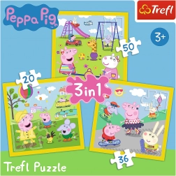 Descoperă distracția triplă cu setul de puzzle-uri 3-în-1 cu tematica PEPPA PIG. În pachet găsești trei puzzle-uri cu număr diferit de piese, potrivite atât pentru cei mai mici, cât și pentru copiii mai mari. Datorită culorilor ecologice și hârtiei cu textură tip pânză, puzzle-urile sunt sigure pentru copii și plăcute la asamblat, fără reflexii.