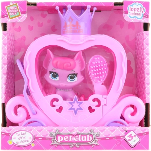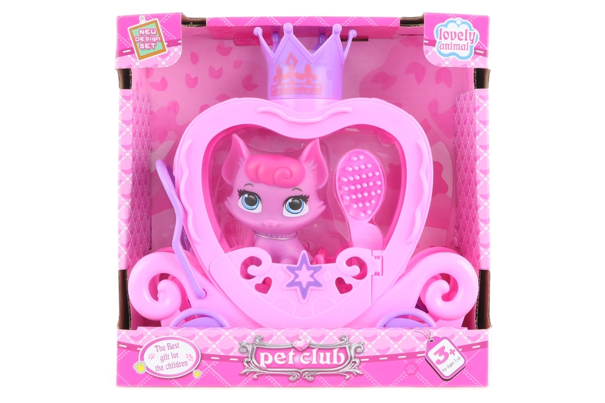 Acest set jucăuș cu pisicuță și cărucior va încânta orice copil căruia îi place să inventeze povești și să aibă grijă de animăluțele sale. Datorită designului drăgălaș cu coroniță și pieptenelui practic pentru coadă, stimulează jocul creativ și de imitație.
