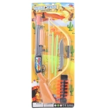 Acest set western oferă copiilor ore de distracție creativă și jocuri de acțiune în siguranță. Datorită săgeților cu ventuză, micii trăgători își pot exersa precizia fără risc de rănire, în timp ce arcul cu două săgeți dezvoltă coordonarea și concentrarea. Cuțitașul ușor din plastic completează echiparea pentru jocuri tematice atât în interior, cât și în exterior.