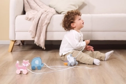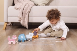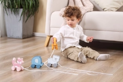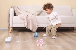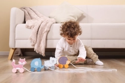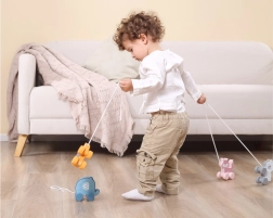 Jucăria de tras este ușoară, ușor de apucat și sigură – are margini netede și un finisaj de calitate. Se potrivește perfect pentru acasă și pentru plimbări prin locuință. Dimensiunea compactă facilitează depozitarea și transportul.