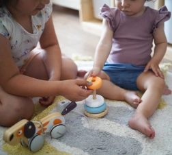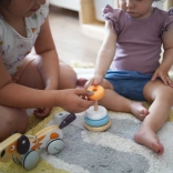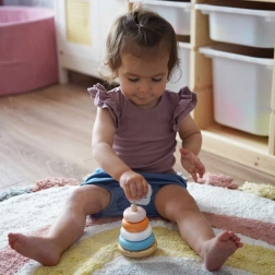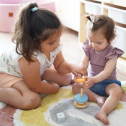Punerea inelelor pe suport nu doar că aduce copiilor bucurie, dar totodată dezvoltă abilitățile de coordonare și gândirea logică. Copiii învață, de asemenea, să recunoască culorile și să lucreze cu diferite forme.