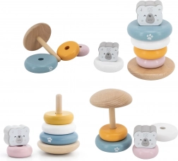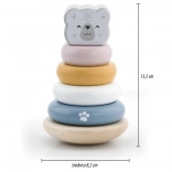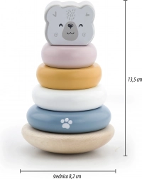 Piramida educativă din lemn cu motiv de Urs polar este jucăria ideală pentru cei mai mici. Această piramidă este dotată cu șase inele de diferite dimensiuni și culori, inclusiv unul principal cu cap de urs. Datorită construcției durabile din lemn, jucăria nu este doar sigură, ci și rezistentă.