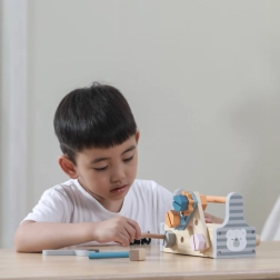 Dulapul cu unelte încurajează copiii în imaginație și îi învață bazele mecanicii.