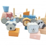 Trenulețul este conceput pentru a sprijini creativitatea copiilor și coordonarea motorie fină prin asamblarea cuburilor și animăluțelor.