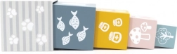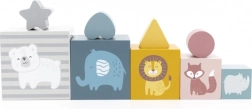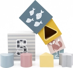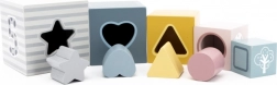 - 5 cutii de dimensiuni diferite și 4 blocuri geometrice