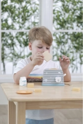 Prăjitorul de pâine din lemn este conceput pentru a oferi copiilor o formă sigură și distractivă de joc de bucătărie. Cu un design simplu și structură durabilă, este ideal pentru jocurile de imaginație și dezvoltarea abilităților motorii.