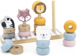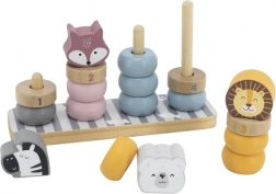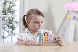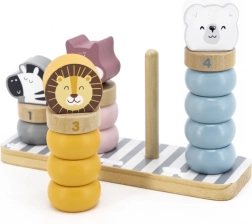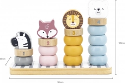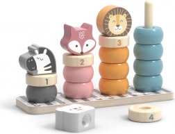 Această jucărie va deveni favorită pentru micii copii. Ajută la dezvoltarea abilităților motorii și îi învață pe copii să numere și să sorteze. Datorită personajelor de animale frumos lucrate, copiii vor îndrăgi jucăria și vor reveni la ea cu drag. Întregul produs este realizat din lemn de calitate, asigurând durabilitate și siguranță în timpul jocului.