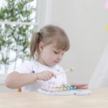 Construcția durabilă, marginile rotunjite și dimensiunile compacte asigură o utilizare sigură și confortabilă chiar și pentru cei mai mici. Xilofonul este o alegere excelentă pentru dezvoltarea simțului muzical, a concentrării și a răbdării.