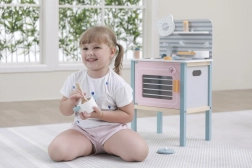 Bucătăria este proiectată pentru un joc sigur al copiilor de la trei ani, încurajând dezvoltarea abilităților motorii fine și a artei de imitație.