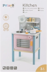 Realizată cu un design de înaltă calitate, bucătăria este echipată cu aragaz, cuptor și chiuvetă, creând un spațiu perfect pentru jocul imaginativ. Elemente precum cârligele suspendate și polițele pentru ustensilele de bucătărie adaugă autenticitate jocului.