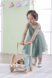 Construcția solidă din lemn și mânerul comod le oferă copiilor sprijin la învățarea mersului. Exersează coordonarea, încrederea și ritmul natural al pașilor.