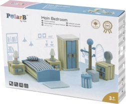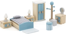 Dormitorul din lemn VIGA POLARB transformă orice căsuță de păpuși într-un loc primitor de joacă. Setul conține pat, 2 noptiere, dulap, cuier, măsuță de toaletă cu taburet, covoraș și coșuleț – toate în nuanțe blânde de albastru și lemn natural. Finisajul de calitate, marginile netede și vopselele netoxice asigură joaca în siguranță, în timp ce dotarea bogată stimulează imaginația, creativitatea și jocul de rol al copiilor.