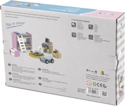 Setul poate fi extins cu alte camere din seria POLARB (dormitor, living, bucătărie, baie), pentru a crea întreaga casă exact după preferințe. Datorită materialelor de calitate și vopselelor netoxice, joaca este sigură și, în același timp, susține motricitatea fină, comunicarea și gândirea logică.