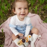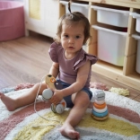 Jucăria dezvoltă coordonarea, creativitatea și imaginația și completează frumos colecția de jucării din lemn în culori delicate. Potrivită pentru joaca zilnică, acasă și în călătorii.