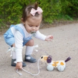 Cățelușul de tras îi motivează pe copii să meargă, întărește coordonarea și îi ajută să își mențină echilibrul. Datorită șnurului confortabil, plimbarea este firească și distractivă.