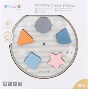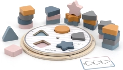 Joc inteligent din lemn pentru cei mai mici, care combină sortarea formelor și culorilor, exersează motricitatea fină și gândirea logică. Include piese din lemn, o placă rotativă, carduri cu modele și un săculeț textil. Jocul din colecția POLARB este realizat din lemn de calitate, vopsit cu culori netoxice în nuanțe pastelate delicate și în același timp distrage, învață și dezvoltă copiii încă de la vârste fragede.