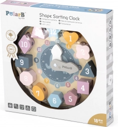 Ceasul din lemn pentru copii POLARB combină sortarea formelor, aranjarea cifrelor și înșirarea într-o singură jucărie educativă versatilă. Cele douăsprezece piese numerotate, în forme geometrice, se introduc în decupajele corespunzătoare de pe cadran, iar acele mobile îi învață pe copii să înțeleagă orele. Fiecare piesă are un orificiu pentru înșirarea ușoară pe șnur, ceea ce dezvoltă în mod natural motricitatea fină și concentrarea.