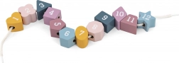 Fiecare piesă are un orificiu pentru a fi trecută pe șnur – antrenează priza, coordonarea mână–ochi și răbdarea.