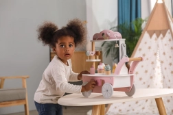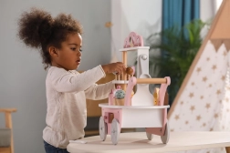 Standul din lemn pentru copii 3în1 POLARB de la VIGA transformă orice cameră într-un tărâm al dulciurilor. Datorită designului mobil, clopoțelului și setului variat de bunătăți din lemn, copiii își exersează creativitatea, comunicarea și jocul de rol ca vânzător sau cofetar. Paleta pastelată delicată și finisajul atent invită la joacă iar și iar.