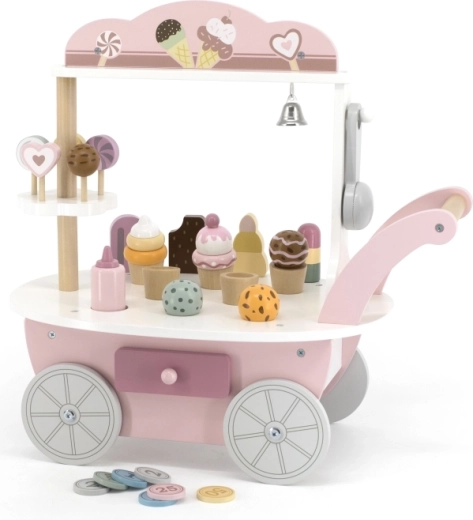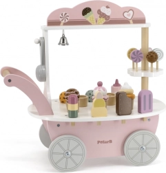 Un singur stand, trei scenarii de joc. Copiii pot oferi înghețată, vinde dulciuri sau se pot juca de-a magazinul – totul într-un set compact.