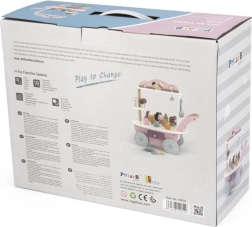 Adorabilul stand din lemn 3în1 de la VIGA – gama POLARB – funcționează ca cofetărie, gelaterie și mic magazin. Copiii se vor bucura de joc de rol ca vânzători, pregătind bunătăți și servind clienți. Include accesorii bogate (acadele, înghețate, cornete, toppinguri), o poliță rabatabilă practică și o execuție sigură din lemn de calitate cu vopsele netoxice în culori pastelate delicate.