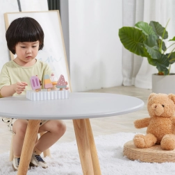 Piesele netede din lemn, lăcuite cu culori netoxice, sunt rezistente și sigure pentru joaca de zi cu zi.